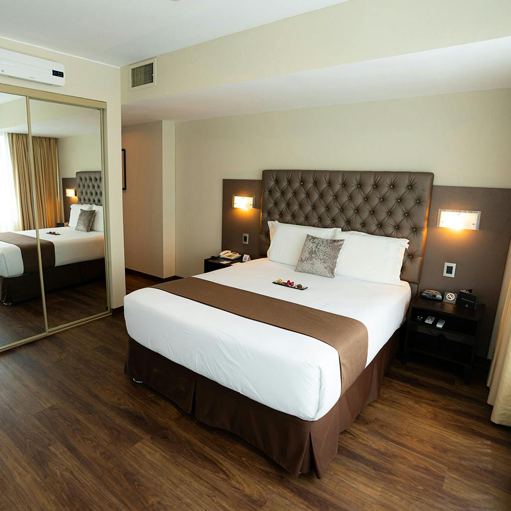 It features an iron and ironing board, hair dryer, kitchenette, electric kettle, cable TV, and minibar.